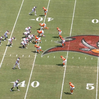 The Buccaneers shift the tight end behind the B gap into the flex wing position.